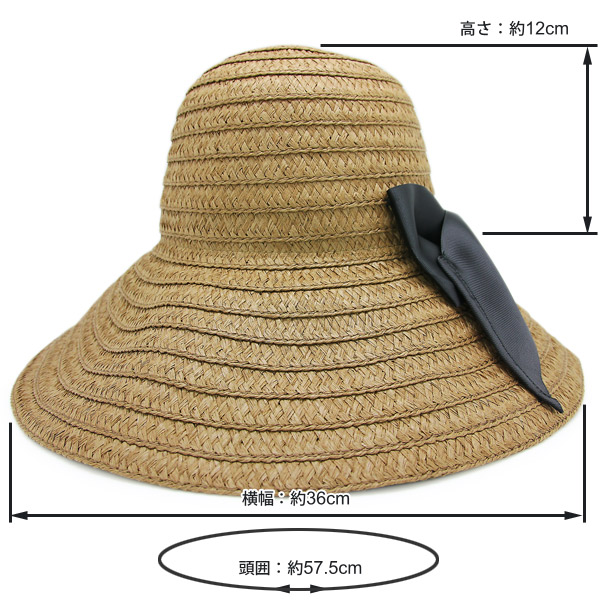 | サイズ | サイズ表記57.5cm(頭囲:約57.5cm、高さ:約12cm、横幅:約36cm[つばも含む]、つばの長さ:約12cm) |