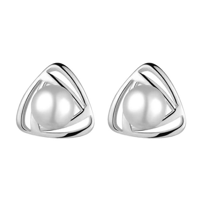 ピアス レディース パール シンプル トライアングル シルバー プラチナ仕上げ 20代 30代 40代 50代 入学式 卒業式 卒園式 オケージョン 送料無料!