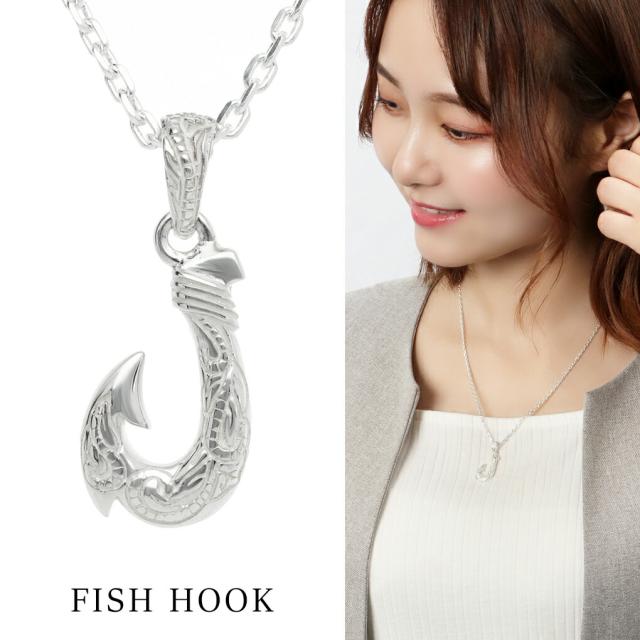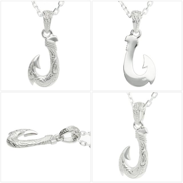 釣り針 ハワイアン ネックレス ペンダント ペンダントトップ ペンダントチャーム シルバー 925 ハワイアンジュエリー フィッシュフック ホワイト 白