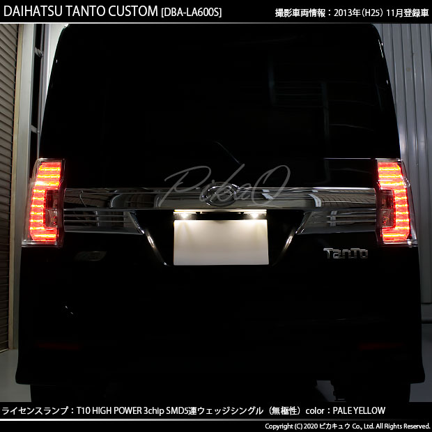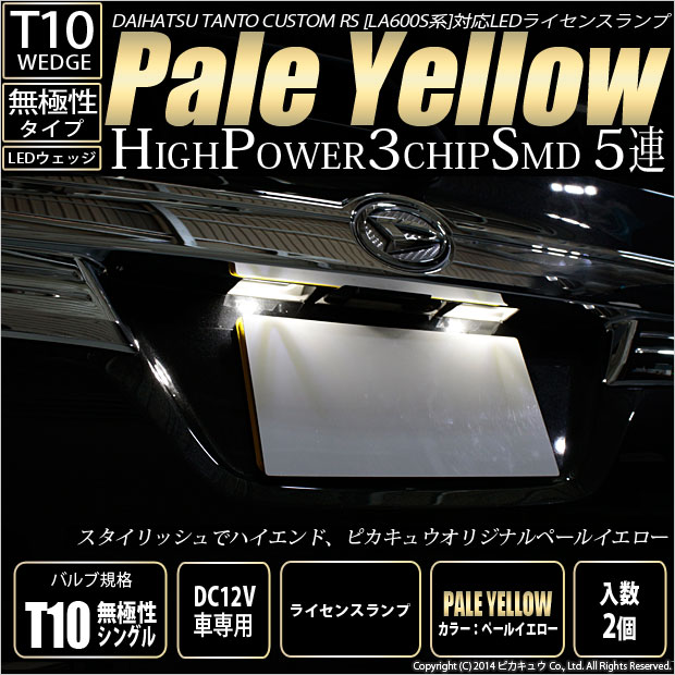 ダイハツ タントカスタム (LA600S/LA610S 前期)対応 ライセンスランプ用LED T10 3chip HYPER SMD 5連 ウェッジシングル ペールイエロー 無極性 1セット2個入 2-B-7