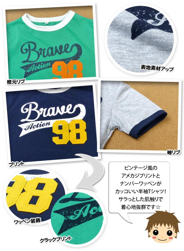 【送料無料】子供服 男の子 Tシャツ 半袖 クラック英字プリント ナンバーワッペン アメカジ系 男児 キッズ【メール便対応】