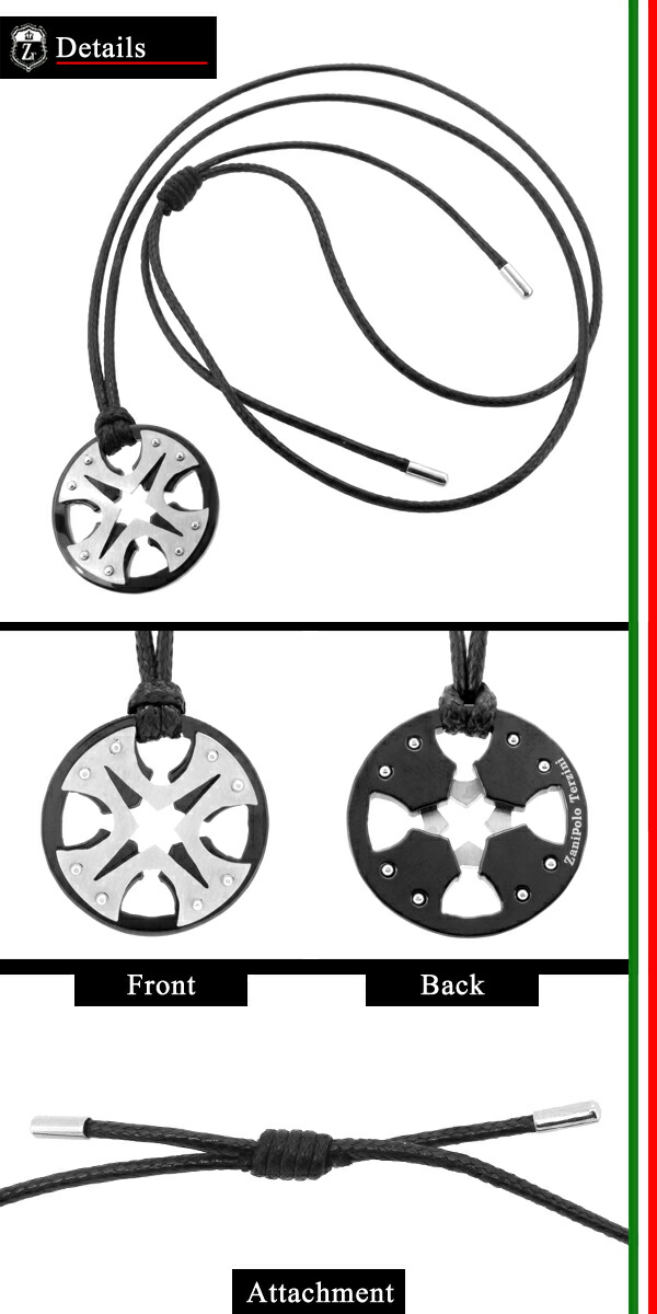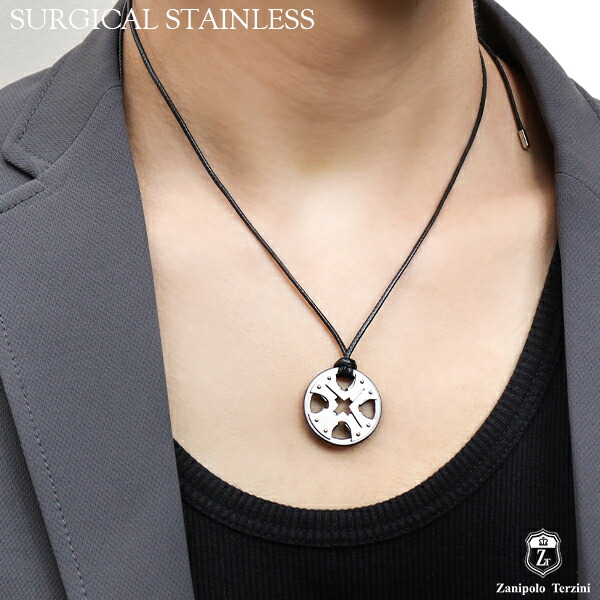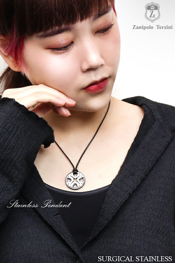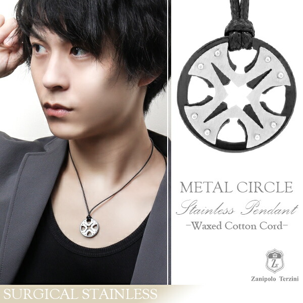 ザニポロタルツィーニ メタルサークル サージカルステンレス ネックレス ワックスコットンコード付きペンダントトップ ステンレス アクセサリー