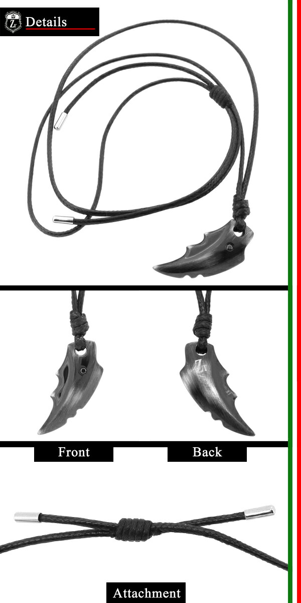Zanipolo Terzini シャープダガー サージカルステンレス ネックレス ワックスコットンコード付きペンダントトップ ステンレス アクセサリー メンズ