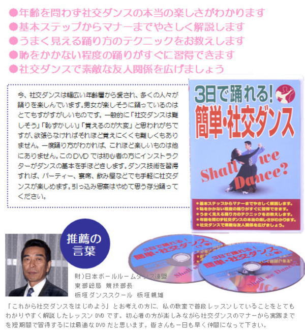3日で踊れる!簡単・社交ダンス DVD 年齢を問わず人気の社交ダンスの楽しさがわかります!