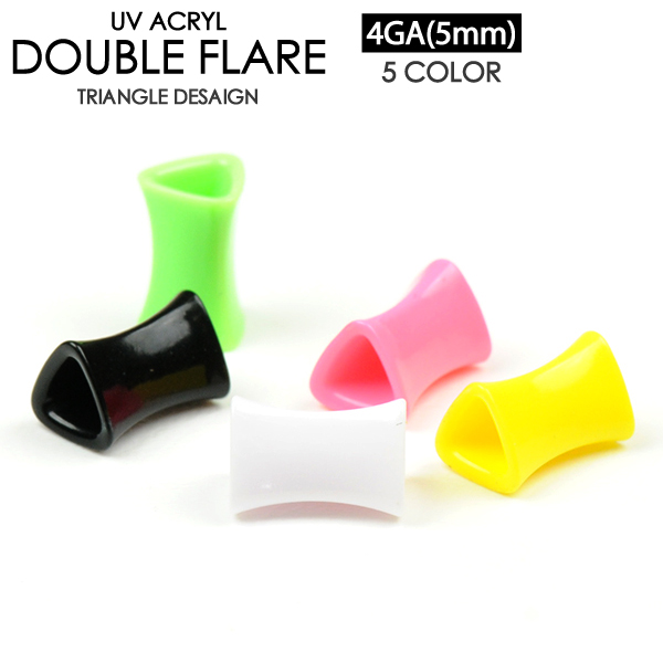 【メール便対応】ボディピアス UVアクリル ダブルフレア トライアングル 三角形 4G(5mm) カラー アイレット イヤーレット チューブ 変形 デザイン ボディーピアス 4ゲージ(5ミリ)┃