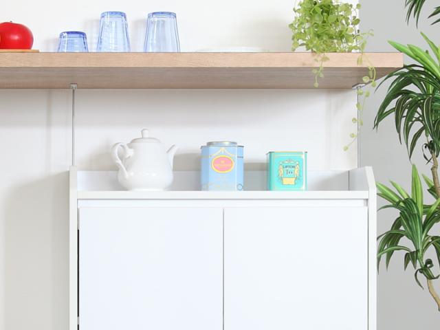 キッチンのカウンター下スペースを有効活用できる収納家具シリーズのキャビネットです。キッチンやダイニングはもちろん、突っ張り金具を取り外せば、リビングや書斎など場所を選ばず活躍します。たっぷり収納できるのに奥行は約22cmと薄型なので、お部屋をスッキリと片付けることができます。