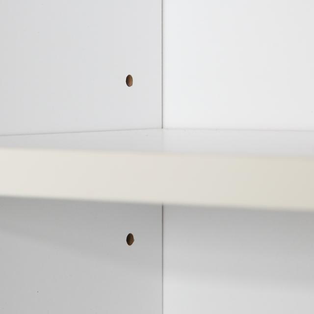 扉内、2枚の棚板は可動式で、収納物に合わせてそれぞれ3段階に高さ調節可能です。棚板を外して縦長の物を置くこともできます。