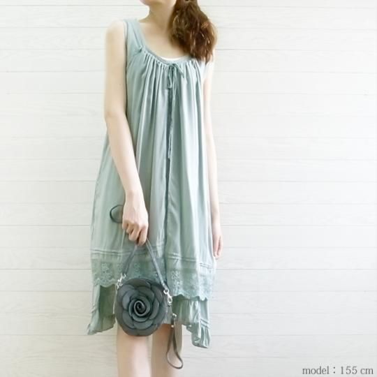 ワンピース レディース【ネコポス便:送料無料】 女子力満点 とろみ感タック&刺繍レース レイヤード風 ワンピース