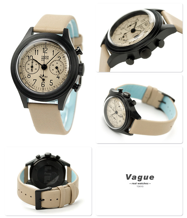 ヴァーグウォッチ ツーアイズ 38mm クロノグラフ 2C-L-001 VAGUE WATCH Co. 腕時計 クオーツ ベージュ レザーベルト