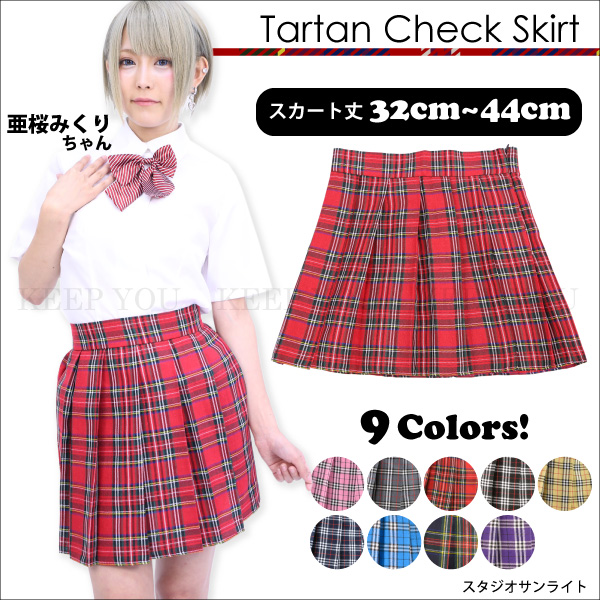 タータンチェック スカート 全9色 32cm/35cm/38cm/41cm/44cm カラー&サイズ豊富! チェックスカート プリーツ チェックスカート 制服 コスプレ スカート プリーツ ひざ丈 制服 スカート チェック 【ハロウィン 仮装 忘年会 結婚式 余興 】 ┃