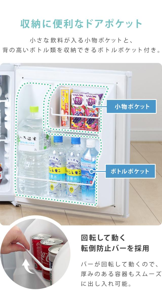 ●温度調節機能。冷やすものによって冷蔵庫内の温度を変えられます。●コンパクト設計。コンパクトな本体サイズで置き場所にも困りません。一人暮らしやお部屋に!多数のホテル・企業様にもご愛顧いただいている大人気モデル