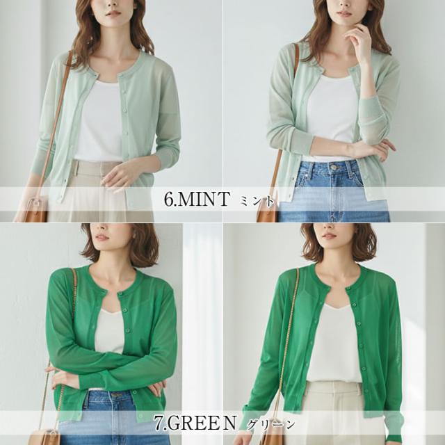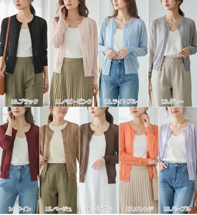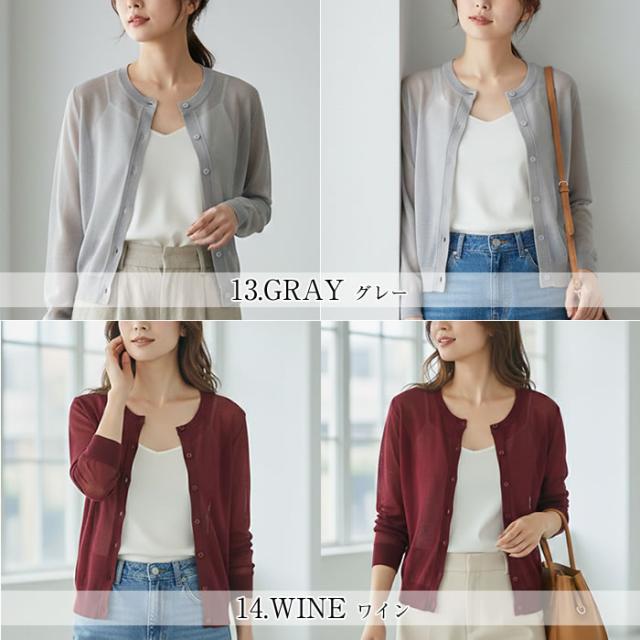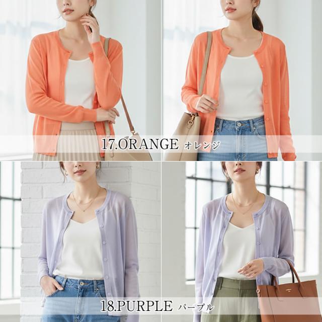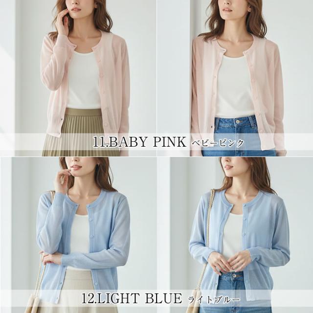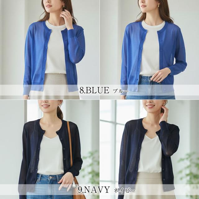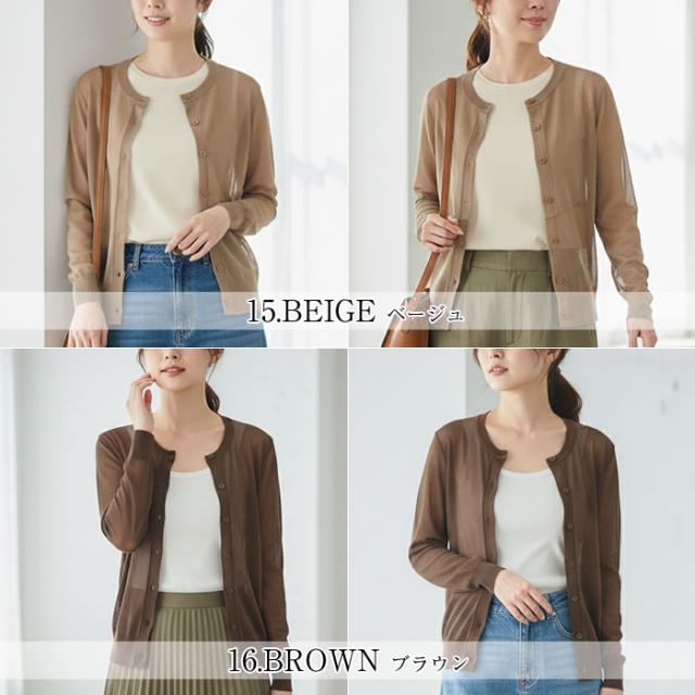 丸首 カーディガン レディース 薄手 夏用 洗える 春夏 夏 ゆうメール便送料無料 トップス Uネック 長袖 UV 紫外線対策 UV対策 シアー サマー カーディガン 丸首Uネックカーディガン