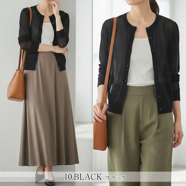| 商品説明 | 薄手で軽量なレディースカーディガンは、丸首のクルーネックとシアーな透け感が上品なおしゃれを演出。通気性が良く涼しさを保つサマーカーディガンとして夏用に活躍し、紫外線対策・UVケアや日焼け防止にもおすすめです。長袖なので冷房対策や旅行用にも便利で、コンパクトにたためて持ち運びやすい軽さも魅力。洗える素材でデイリー使いしやすく、オフィスカジュアルや大人カジュアルにも自然に馴染みます。20代・30代・40代はもちろん50代・60代にも好評で、季節の変わり目から秋冬の羽織りまで着回し可能。プレゼントやギフトにも選ばれる一枚です。 |