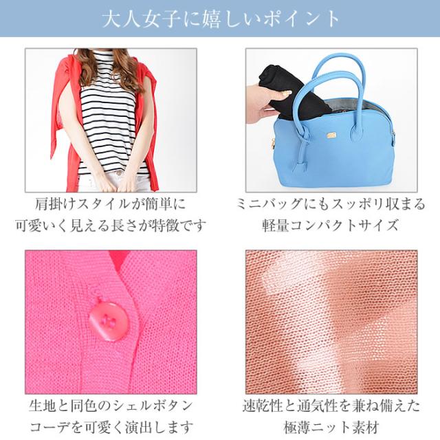 - とても薄手で思っていた以上にいいです。色違いで購入検討中です。丈が短めなので、スカートやワンピに合うし肩に掛けてもいい感じでした。