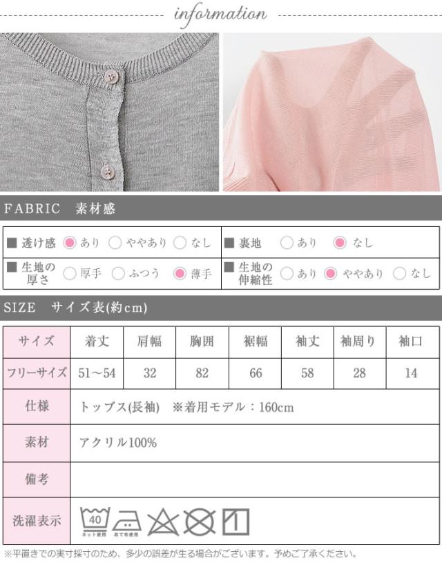 - 超薄手購入。可愛い色で長袖ですが春から夏の冷房効きすぎなど寒い時などはおりにちょうどぴったりだと思います。