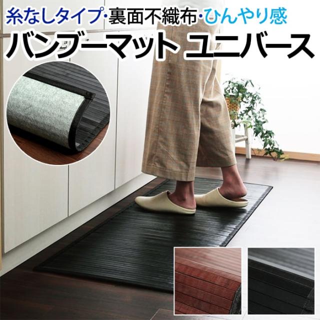 キッチンマット 竹マット ラグマット 夏用 ラグ 夏ラグ サマーラグ カーペット 暑さ対策 冷感 ヒンヤリ ユニバース 竹 (I) 約50×150cm 糸無し 貼り付けタイプ 夏用 裏面不織布 PP素材ヘリ 汚れにくい 引っ越し 新生活