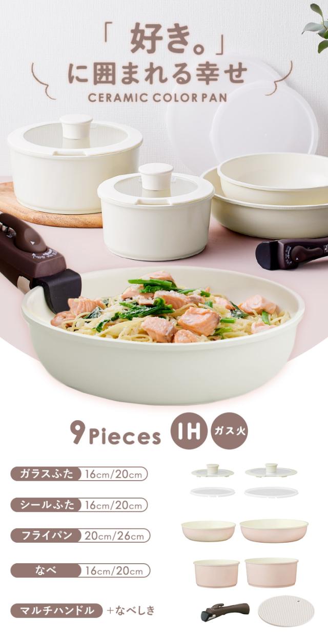 フライパン セット 9点 IH対応 セラミック ガス おしゃれ 着脱式 焦げ付かない アイリスオーヤマ セラミックコーティング カラー CCRC-9S ガス火 ih