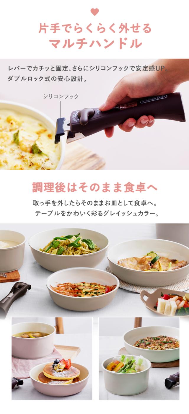 取っ手が外せるので、そのまま食卓へ。収納にも便利。