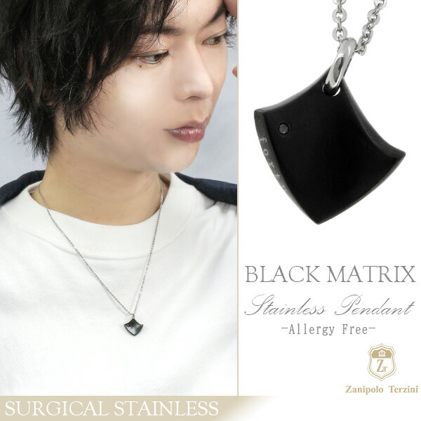 ザニポロタルツィーニ ブラック マトリックス サージカルステンレス ネックレス 金属アレルギー 金属 フリー メンズペンダント 男性用