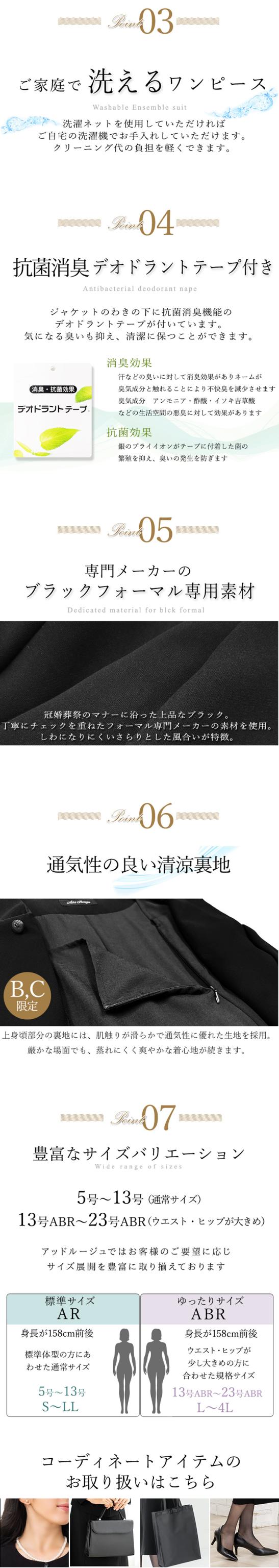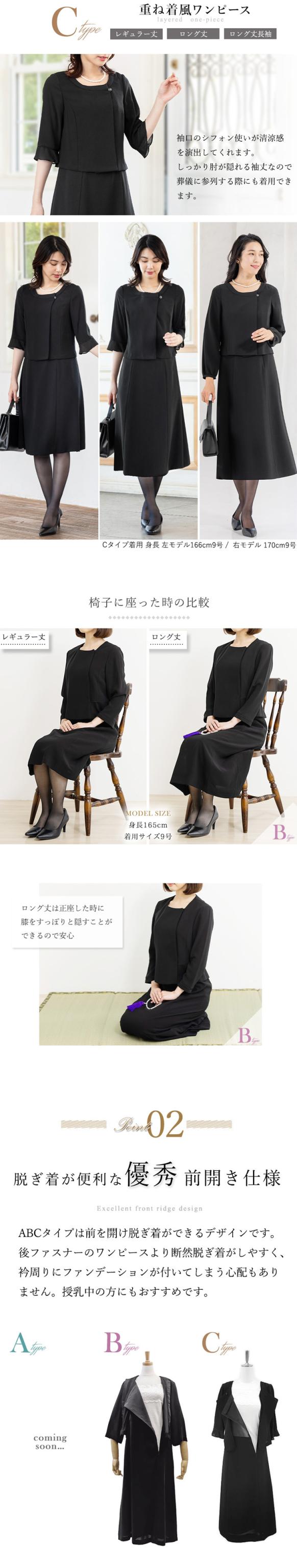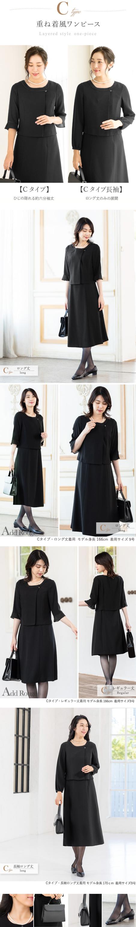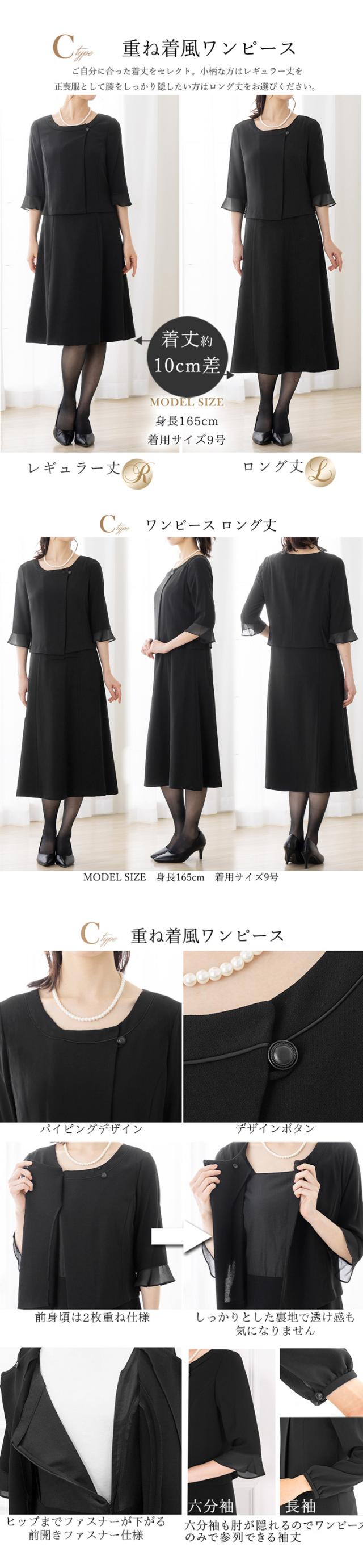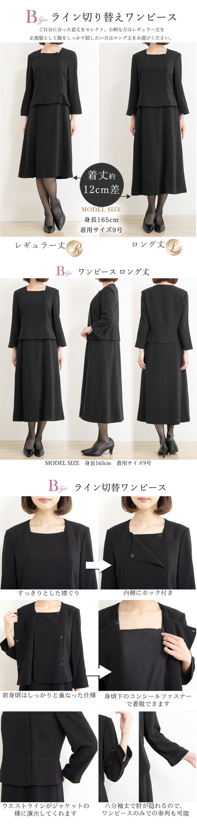 冠婚葬祭のマナーに沿った上品なブラックのデザインと着丈が選べるワンピースです。
