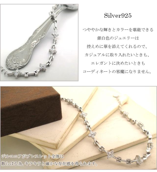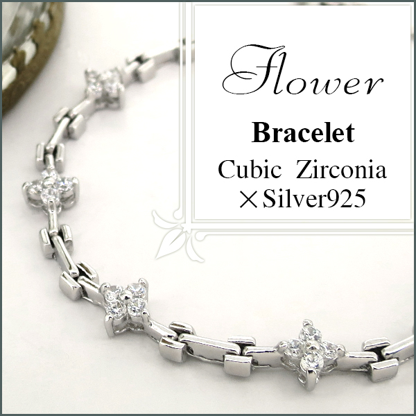 フラワー ジルコニア シルバーブレスレット 16〜18cm/レディース/シルバー925