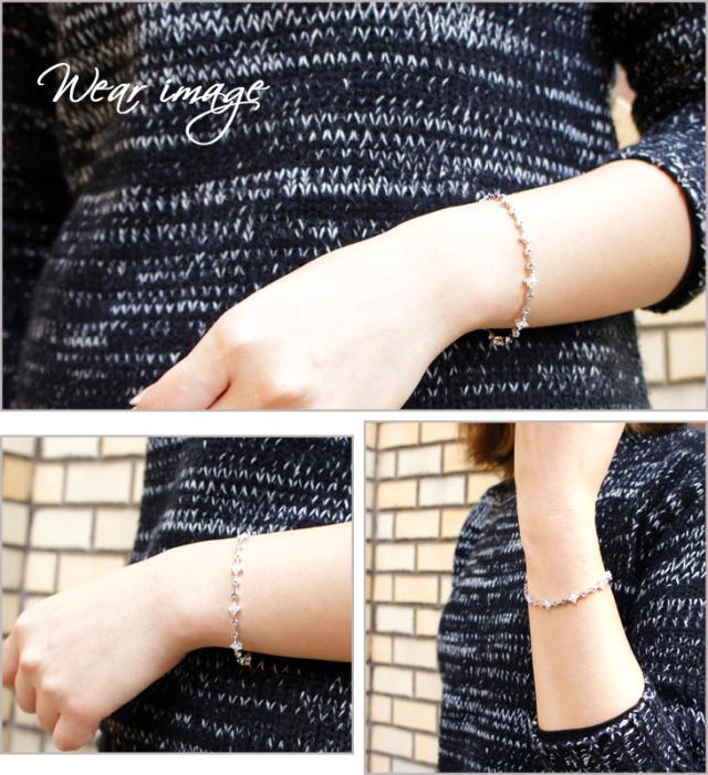 適度なボリュームといくつものジルコニアが使われている為、キラキラで手首周りに確かな存在感が得られます。