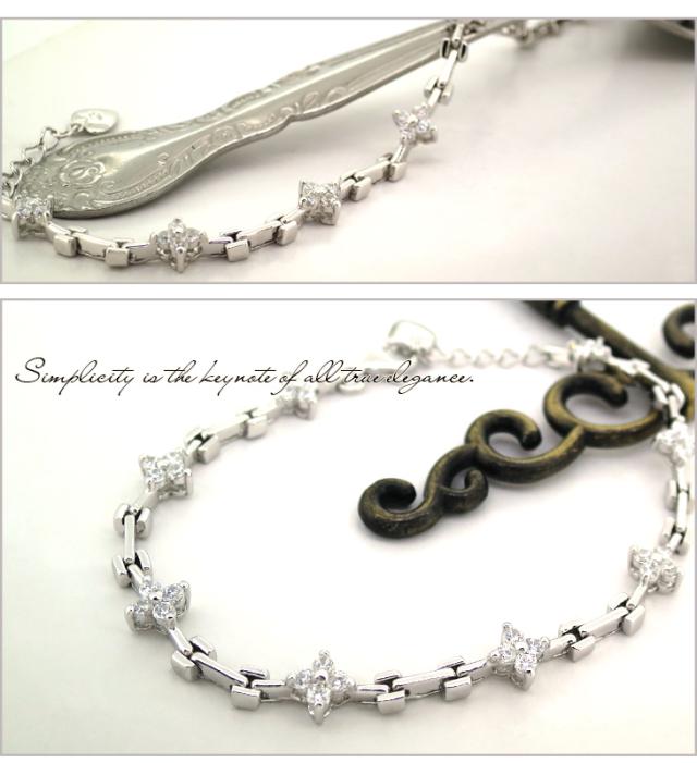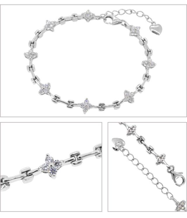 4石のジルコニアが十字状に留められ、棒状パーツで繋げられたデザインのシルバーブレスレット☆