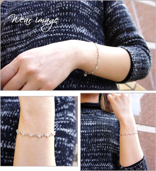 適度なボリュームといくつものジルコニアが使われている為、キラキラで手首周りに確かな存在感が得られます。