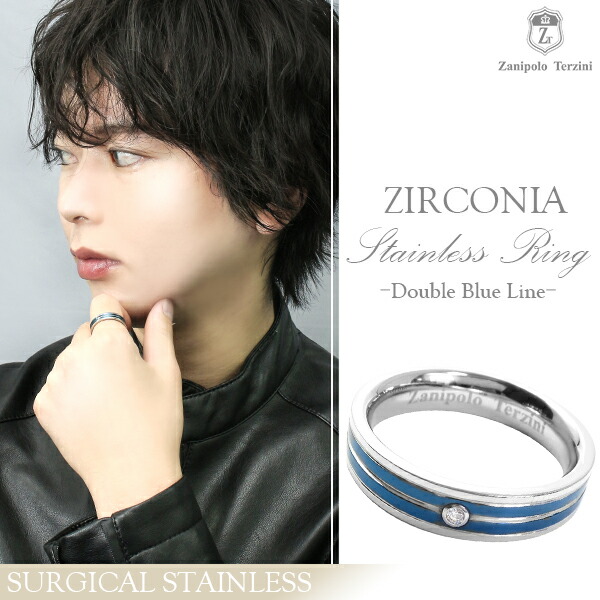 Zanipolo Terzini ダブル ブルーライン ジルコニア サージカルステンレス リング 17〜22号 ステンレス アクセサリー メンズ 指輪 ライン