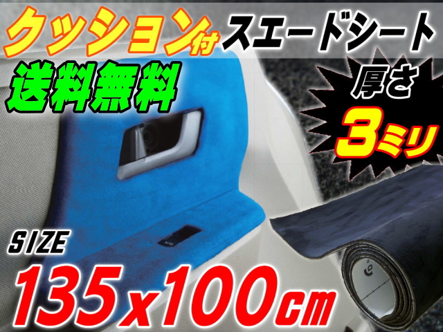 クッション付きスエードシート (大) 黒 【宅急便 送料無料】 幅135cm×1m ウレタン スポンジ スエード生地 糊付き アルカンターラ調 ブラック カッティング可 起毛 粘着 曲面 インテリア ウォールクロス 天張り 天井 バックスキンルック スウェード シール