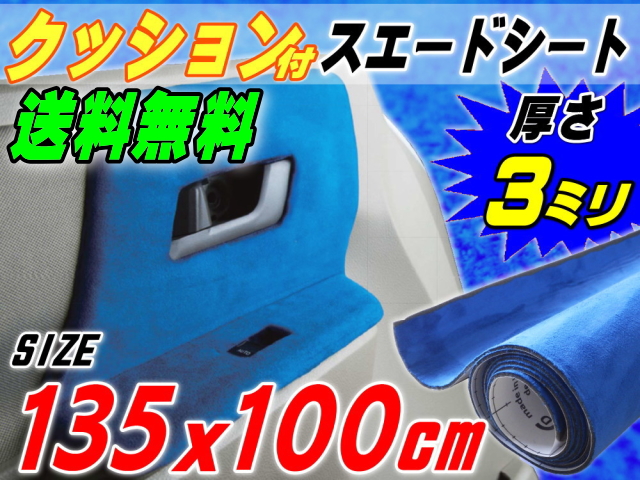 クッション付きスエードシート (大) 青 【宅急便 送料無料】 幅135cm×1m ウレタン スポンジ スエード生地 糊付き アルカンターラ調 ブルー カッティング可 起毛 粘着 曲面 インテリア ウォールクロス 天張り 天井 バックスキンルック スウェード シール