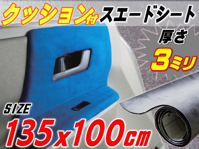 クッション付きスエードシート (大) 灰 幅135cm×1m ウレタン スポンジ スエード生地 糊付き アルカンターラ調 グレー カッティング可 起毛 粘着 曲面 インテリア ウォールクロス 天張り 天井 内装 ステッカー バックスキンルック スウェード シール ヌバック