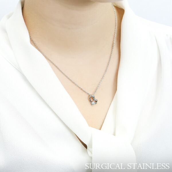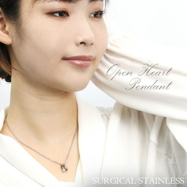 ネックレス レディース 金属アレルギー Brearley Gear ジルコニア オープンハート サージカルステンレス レディースネックレス 女性用