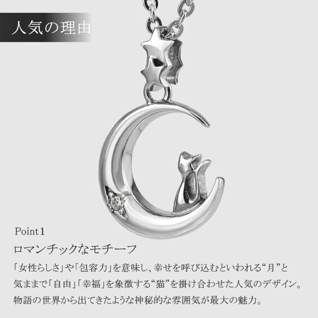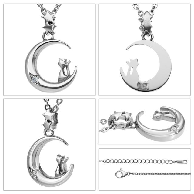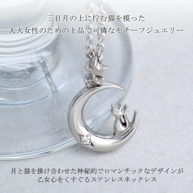 月と猫を掛け合わせた神秘的でロマンチックなデザインが乙女心をくすぐるステンレスネックレスです。
