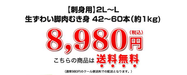 ●商品名/【刺身用】2L〜L生ずわい脚肉むき身42〜60本(約1kg)