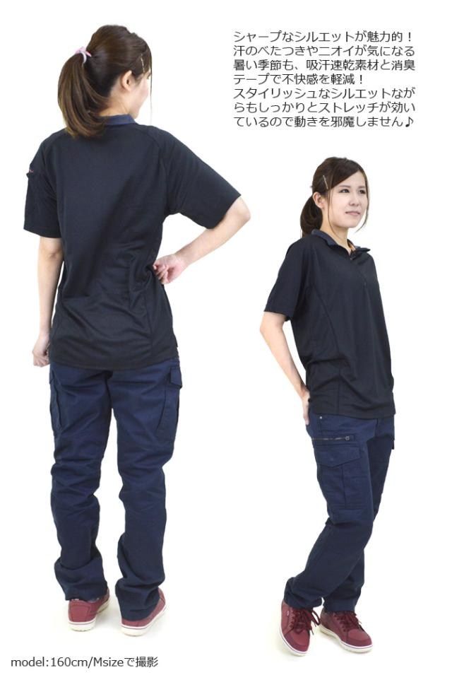 | シャープなシルエットが魅力のストレッチ半袖ポロシャツです。袖上部にスマホも収納できるマルチポケット付き。吸汗速乾素材と襟元&脇下の消臭テープで機能性も抜群。 | ||||||