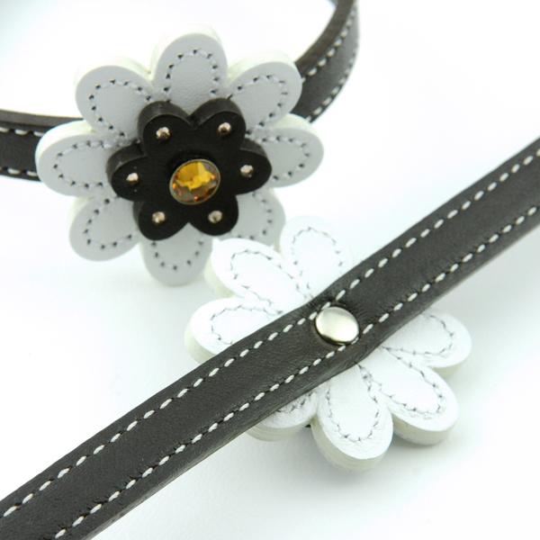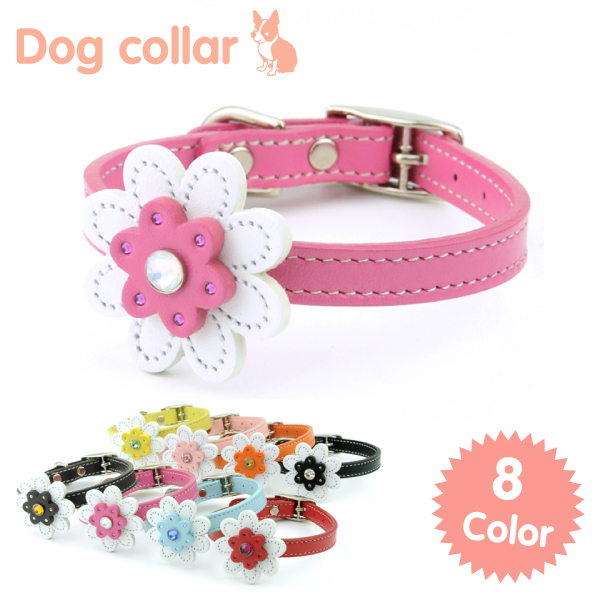 【メール便対応】牛本革 レザー 8ベンフラワー S/M サイズ Happy 日本製 人気 スワロフスキー ハッピーつくってハッピー 革首輪 ドッグ 【ドック ファッション イベント ドッグラン お散歩 愛猫家 ペット グッズ ドッグカフェ】 ┃