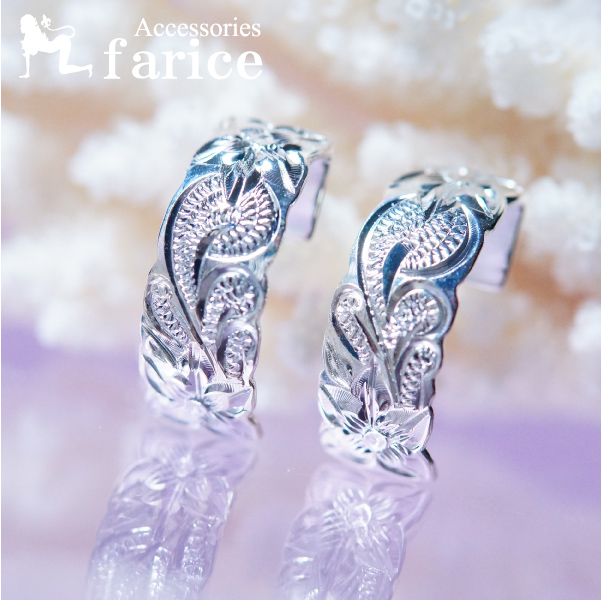 プルメリア(花)&スクロール(波) カレイキニカットアウトデザイン ハワイアンジュエリー レディース ハーフムーンスタッドピアス