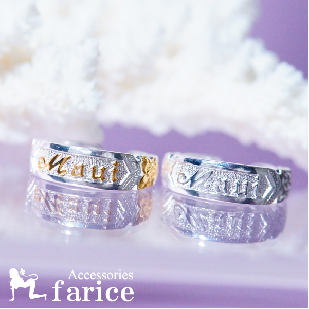 Maui&プルメリア&スクロール ハワイアンジュエリー ピンキー&トゥーリング【4mm幅/イエローゴールド or シルバーカラー 】