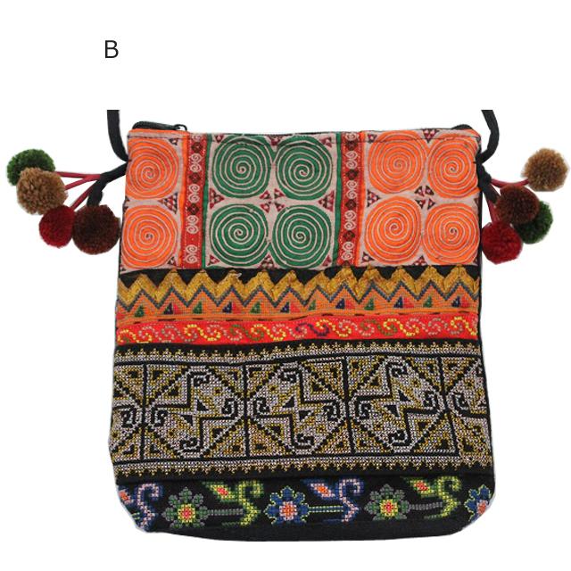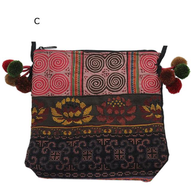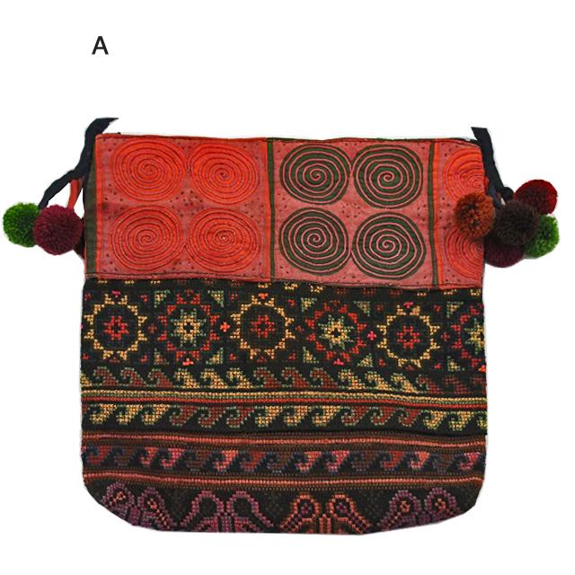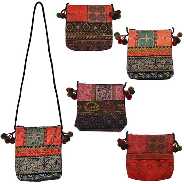 モン族ポンポンポシェット【メール便対応/アジアン雑貨/エスニック雑貨/アンティーク雑貨/ポーチ/ショルダーバッグ/ラッピング無料】