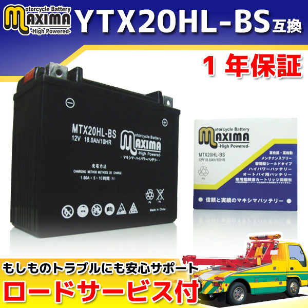 ロードサービス付 MFバッテリー MTX20HL-BS 【互換 YTX20HL-BS DTX20L-BS 65989-97A/65989-90B】 ハーレー XL1200L XL1200S XL883C