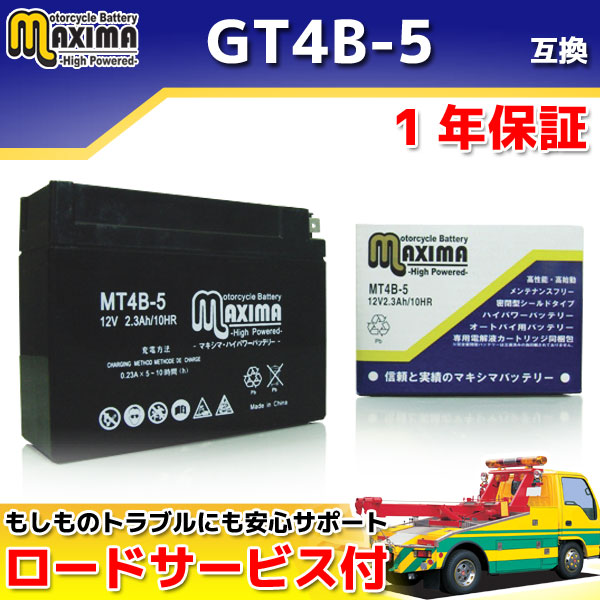 ロードサービス付 MFバッテリー MT4B-5 【互換 YT4B-BS GT4B-5 FT4B-5 DT4B-5】 ニュースメイトV50 TZM50-R ビーノ ビーノクラシック