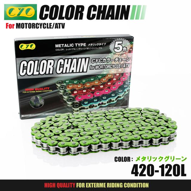 ■CYCカラーチェーン 420-120L メタリックグリーン