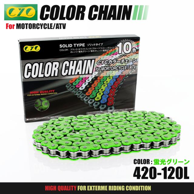 ■CYCカラーチェーン 420-120L 蛍光グリーン