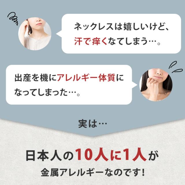 - 私は汗っかきでネックレスがよく変色してしまっていました。 こちらの商品は変色したりアレルギーが出たりしないので安心して使えます。 大満足です。