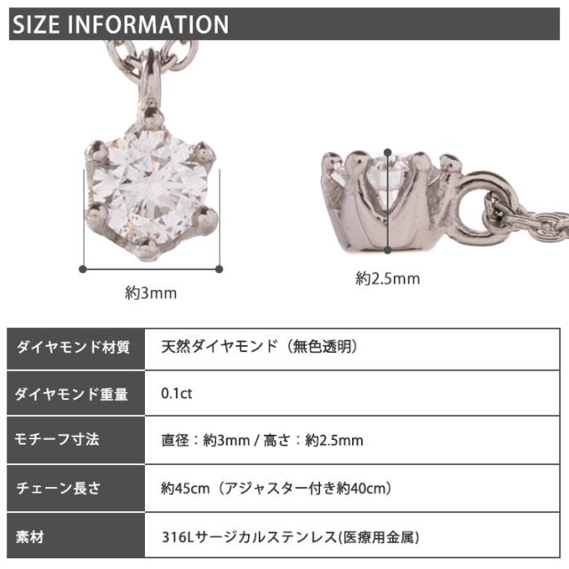 【12/3入荷・発送予定】ネックレス 天然ダイヤモンド 金属アレルギー対応 0.1ct クラウンダイヤモンドネックレス サージカルステンレス 一粒ダイヤ プレゼント ピアッシングナナ