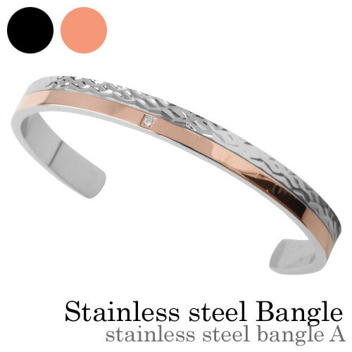 ステンレススチールバングルA レディース (ピンクゴールド) 槌目模様 アクセサリー Binich 20代 30代 40代 50代 プレゼント 男性用 アクセサリー bassb-2301-pi