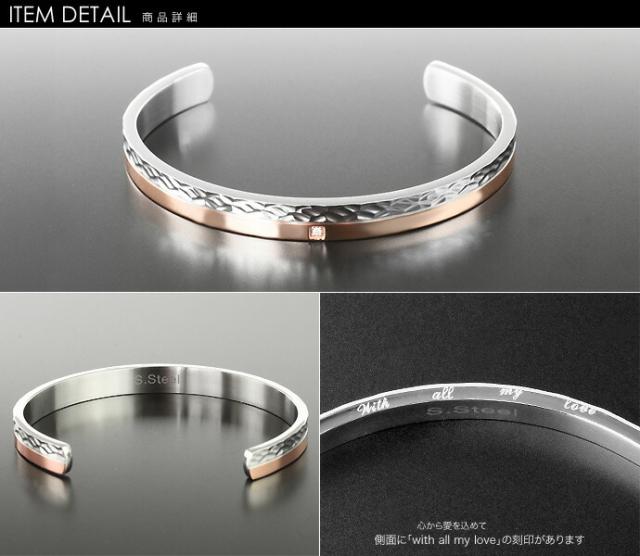 ■商品名:ステンレススチールバングルA レディース (ピンクゴールド) 槌目模様 アクセサリー ステンレスブレスレット