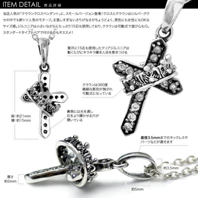 当店人気の「クラウンクロスペンダント」に、スモールバージョン登場!クロスとクラウンはシルバーアクセの中でも断トツ人気のモチーフ。主張しすぎないさりげなさがちょうどよく、男性にも女性にもOKなサイズ感。ジルコニアは小さいながらにたっぷり15石も使用しており、クラウンは可動式で遊び心も◎。スタンダードタイプとペアで付けるのもオススメ!