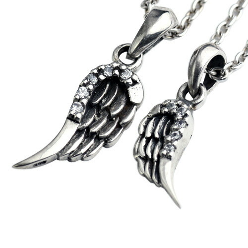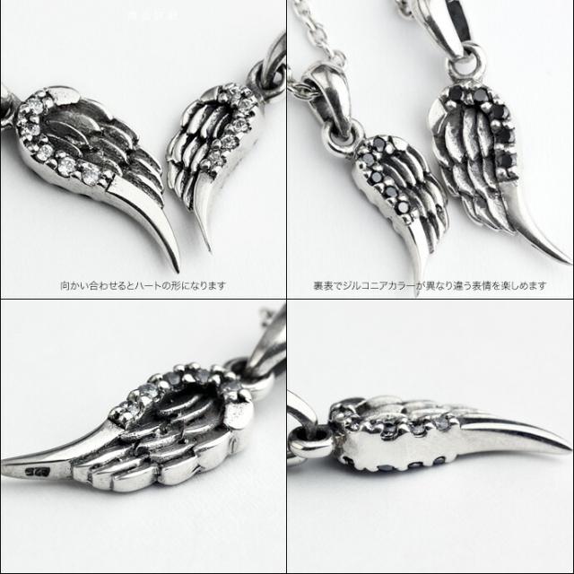 (ペア販売)リバーシブルジルコニアウィングペンダント ペアネックレス (2mmアズキチェーン付きセット) シルバー925 アクセサリー ウイング フェザー 羽 翼 Binich 20代 30代 40代 50代 プレゼント 男性用 アクセサリー bap-1742